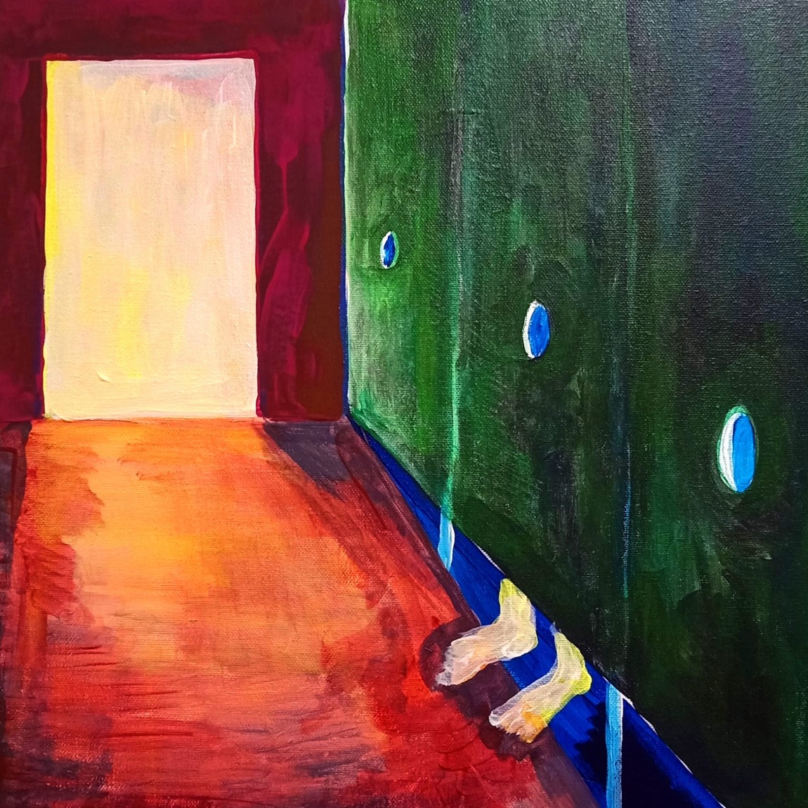 Benjamin Baker’s work is a queer, direct look at the nature of intimacy in a contemporary age. Set in intoxicating, often chromatic scenes, smoky, steamy fractures from pigment pulled and laid to illuminate fleshy forms draw each subject forward and away from the viewer. This tension of the nature of Queer encounters that are had in spaces designated for discreet sexual practices are explored alongside Baker’s own experiences of the distorted, isolating discourse by which we regard gay sex practices in mainstream dialogue. In this space, discussions of gay sex practices are often politely made palatable or minimised away from reality – forever held in the shadow of decay and disease of the post-AIDS mentality. Baker’s brushwork is both opulent and scarce – advocating for these conversations around intimacy, partnership and complex social relationships to be held under the kitchen light; these same normal, quiet sparse rooms – made magical – able to open up through the inclusion of these ideas where collective dialogue debunks stigma, encouraging a different trajectory of thought. In a quiet, reflective gallery space, we can contemplate the insight of the importance of these spaces and these sex practices which are not fully understood by broader society. These anecdotal works span across a variety of mediums and encourage a non-judgemental, playful interpretation of Queer sexuality and curiosity that has no attempts to reduce itself – garish turns gramarye turns gay; an attempt to perceive these places and behaviours as necessary to the development of healthy expressions of intimacy.
