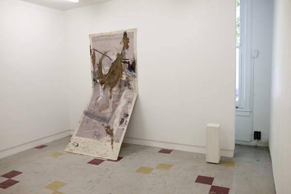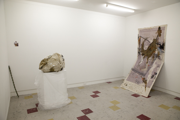 This is where you fold like a cheap suit is a solo exhibition of works that consider the history of art and the attitudes that inform its contemporary production. Interrogating ideas of authenticity, sincerity and the contemporary incarnation of the artist as (anti-)hero, the works initiate a critical dialogue through sculpture, collage, painting and installation. This is where you fold like a cheap suit starts from the problem of assuming an appropriate stance – sincere, ironic or irreverent – to art and to life broadly speaking and stems from a personal aversion to the overly sincere as much as to the cynically self-important. Presenting the artist’s own thinly disguised anxieties, frustrations, hypocrisies and self-seriousness as symptomatic of a wider state of affairs, This is where you fold like a cheap suit speaks to the absurdity and pretension of our contemporary fixation upon individual ‘self actualization’.